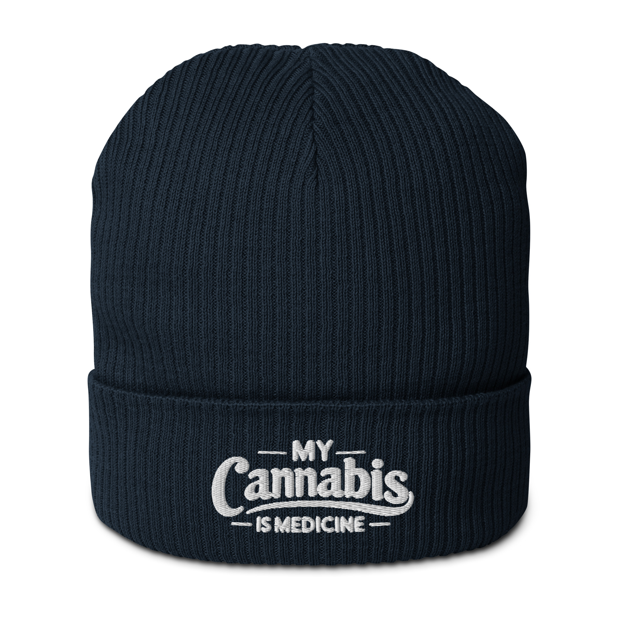 Show your support for medical cannabis in Massachusetts by purchasing an organic ribbed beanie with the statement My Cannabis Is Medicine™ on the front. This organic ribbed beanie is stylish, practical, and eco-friendly, making it an absolute must-have for your hat selection. Thanks to its breathable lightweight fabric, you can wear it both indoors and outdoors.